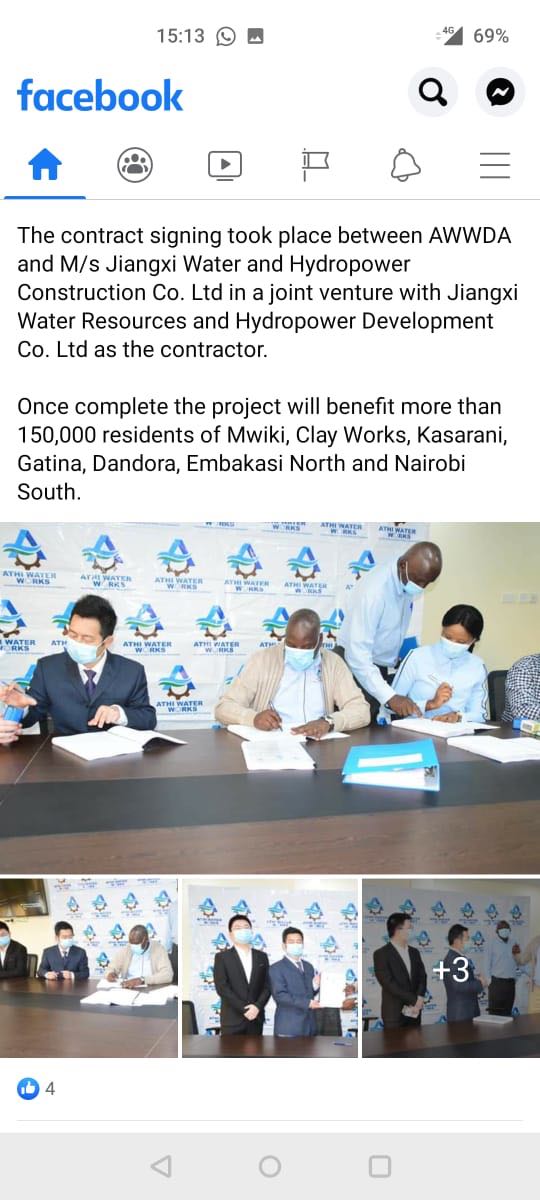 2021年3月19日當地時間上午八時,肯尼亞分公司與肯尼亞阿西水務開發局在阿西水務大廈簽訂了Mwiki污水管道項目施工合同??夏醽喒究偣こ處焺⑷鹆执矸止九c阿西水務局首席執行官麥克共同出席簽約儀式并簽定施工合同。