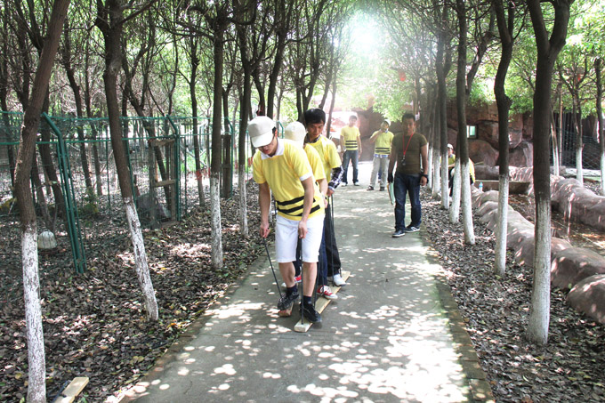 乘車到達農莊后,活動的第一項內容是隊列訓練,全體人員統一著裝,聽從教練口令,立正、稍息、向右看齊,動作一致,隊列整齊劃一,個個精神抖擻。隊列訓練結束后,是闖關奪冠比賽,79人被分為5個小分隊,每隊成員積極發揮聰明才智,隊長集思廣益,為本隊征集隊名和Logo,并在隊旗上描繪出具有本隊特色的動員口號。每支小分隊發有一張地圖,起點不同,但都需闖過五大難關,每一關都規定隊員必須先完成指定任務,再回答十個問題,用時最少,回答問題準確率最高的一隊為勝。這五大難關分別是:祥龍獻寶,瑞龍戲珠,猛龍吐珠,潛龍轟天,碧水龍舟。比賽過程中,青年員工們熱情高漲,目標明確,充分發揮團隊協作精神,爭分奪秒完成各項任務。這是屬于我們青年人的舞臺,恣意揮灑著青春,布滿汗水的笑臉在陽光下熠熠生輝。經過緊張激烈的比拼后,最終第一小分隊奪得最后的冠軍,歡呼祝賀聲響成一片。