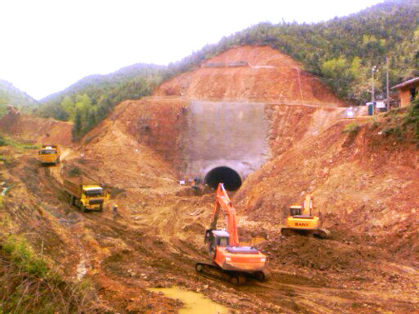 高倚四級水電站位于遂川江北支江高倚段,壩址座落在江西省遂川縣大坑鄉,是贛江水系一級支流遂川江北支流梯級開發電站群中的一座。該水電站是一座以水力發電為主的低壩引水式小型水電站工程,安裝3臺軸流定槳立式水輪發電機組,總裝機容量7500千瓦,多年平均發電量2466萬千瓦時。水庫正常蓄水位134.5米,總庫容224.3萬立方米,主要由擋水壩建筑物、引水建筑物、廠房建筑物、防護工程及并網輸電線路五部分組成,為小(Ⅰ)型水電站工程,工程等別為Ⅳ等。大壩壩軸線總長269米,引水隧洞總長1414.9米,隧洞為無壓城門形斷面,開挖斷面達60平方米(屬超大型斷面),引水隧洞進口支洞長度42米。