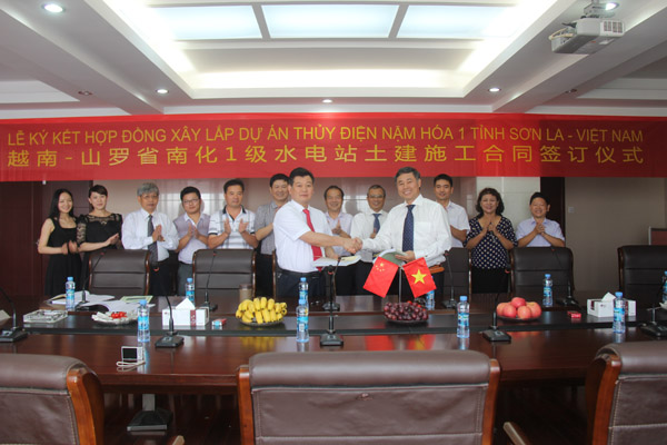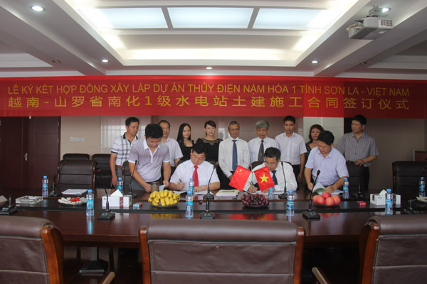 2013年7月22日,越南山羅省南化一級(jí)水電樞紐項(xiàng)目建設(shè)合同簽字儀式在我公司南昌市總部順利舉行,越南ANPHA水電投資股份公司董事長阮平陽和我公司董事長王元旦分別代表雙方簽署合同。出席簽約儀式的還有越南建設(shè)與機(jī)電股份公司(MECO)董事長阮玉平、ANPHA水電投資股份公司總經(jīng)理陳重朵,我公司副總經(jīng)理張周平、副總工程師鄒春明、項(xiàng)目經(jīng)理夏愛民等。