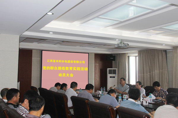 8月7日,江西省水利水電建設有限公司召開黨的群眾路線教育實踐活動動員大會暨工作會議,對全公司教育實踐活動進行動員部署。省水利廳副巡視員、廳教育實踐活動第一督導組組長周江紅、副組長郭明等領導到大會指導。公司黨委書記、董事長兼總經理王元旦作動員講話,黨委副書記王延軍主持大會并部署工作。公司黨委委員、中層以上管理人員、機關全體黨員、來自國內外項目和退離休黨員、群眾代表60多人參加了會議。