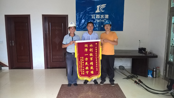 2015年7月24日,在一陣熱烈的鞭炮聲中,星子縣蘇家垱鄉人民政府丁鄉長等一行,托舉著一面寫有“水利鐵軍精筑堰,潤澤一方民安寧”的錦旗送到了江西水建星子縣蛟塘鎮防洪工程施工項目部。