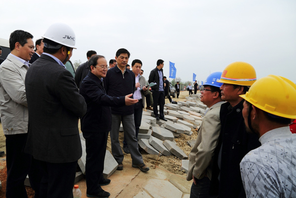 4月15日上午,江西省省委副書記、省長鹿心社來到我公司承建的鄱陽湖區(qū)二期防洪工程第六個單項鄱陽縣饒河聯(lián)圩除險加固工程饒河1標施工現(xiàn)場進行視察調(diào)研。
