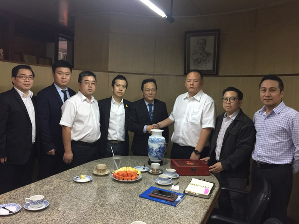 海外公司黃鄭民一行先是認真聽取了泰國有限公司負責人謝盛對泰國有限公司注冊成立以來所取得的成績及發展過程中所遇到的困難,海外公司總經理黃鄭民聽后表達了對泰國有限公司發展的關心,并為泰國公司的發展提出了一些指導意見及建議。