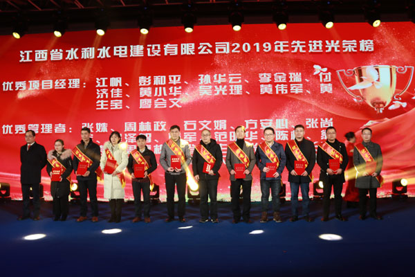 隨后,公司董事長王元旦等領導向潦河灌區解放閘壩除險加固工程設計施工總承包(EPC)項目、盧旺達RUSUMO瀑布水電站項目等16個優秀團隊,彭和平、黃生寶等10位優秀項目經理,張姝、張聰等20位優秀管理者和應怡超、程春鋒等40位優秀員工予以表彰。感謝他們在過去的2019年為江西水建發展所作出的貢獻。