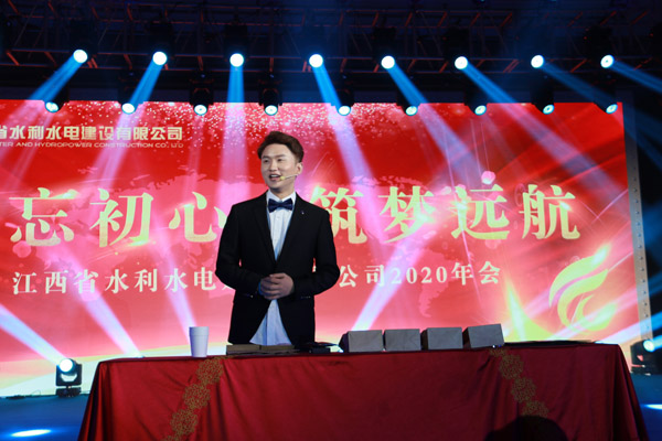 隨后,晚會演出在舞蹈《花開富貴》中拉開帷幕,歌曲聯唱,獨唱,舞蹈,詩朗誦、魔術、大合唱等文藝節目輪番上演,整場演出精彩絕倫,高潮迭起。晚會前播放了《2019年工程巡禮》視頻、展現了工程建設是公司生存的命脈,質量與安全是公司發展的生命線;晚會中播放了《國內外員工拜年》視頻,豐富的表現形式展現了一年來公司取得的豐碩成果和公司員工在工作、生活中的點點滴滴,體現了江西水建人昂揚向上的精神面貌。