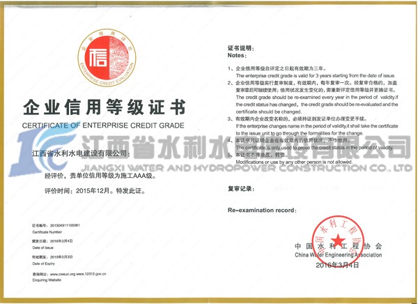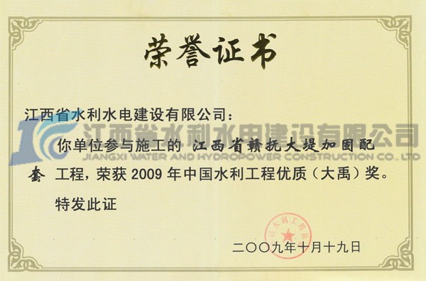 金杯銀杯不如老百姓的口碑。十年來,公司始終以項目管理為核心,以過程控制為主線,以質量安全為重點,以品牌形象為抓手,努力鑄造精品工程,滿足社會需要,實現社會價值。十年來,公司共有  12項QC成果,獲省部級獎項;有 7項工法獲得省部級工法,2項科研項目研究獲贛鄱水利科技一等獎;填補了歷史空白,有力的提升了企業的核心競爭力。十年來,公司承建的贛撫大堤加固配套工程和長江大堤防洪工程榮獲“大禹獎”,數十個項目榮獲全省水利優良工程獎,5個項目被水利部評為文明工地,榮獲水利部首一批安全生產標準化施工企業和信用等級AAA企業。